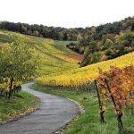 Wanderweg: Vom Rotenberg -> auf Halbhöhenlage durch Weinberge -> schöne Gärten, herrliche Blicke und schön gefärbtes Weinlaub.