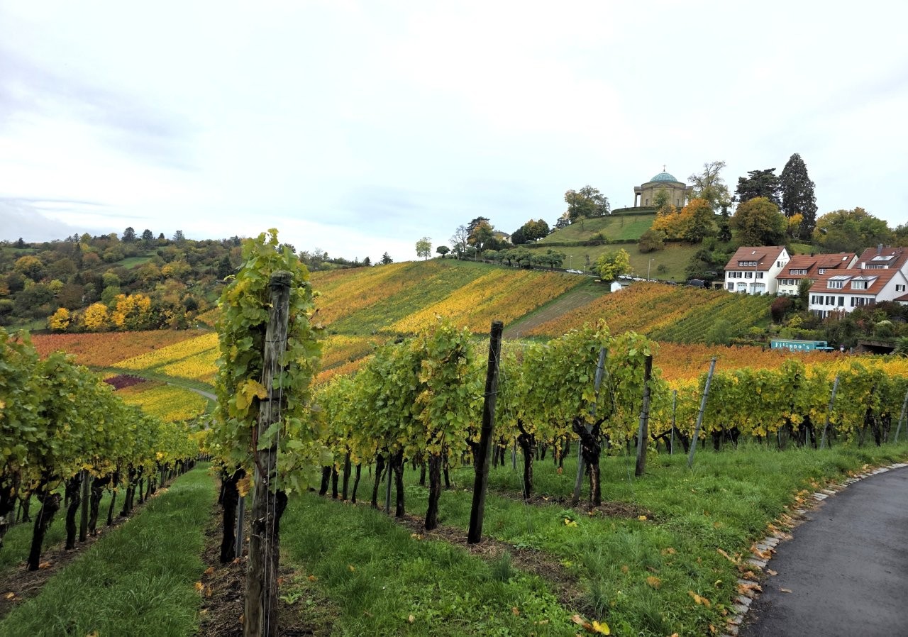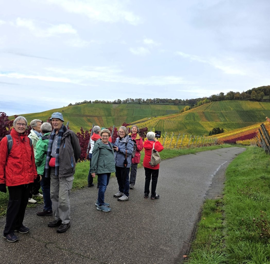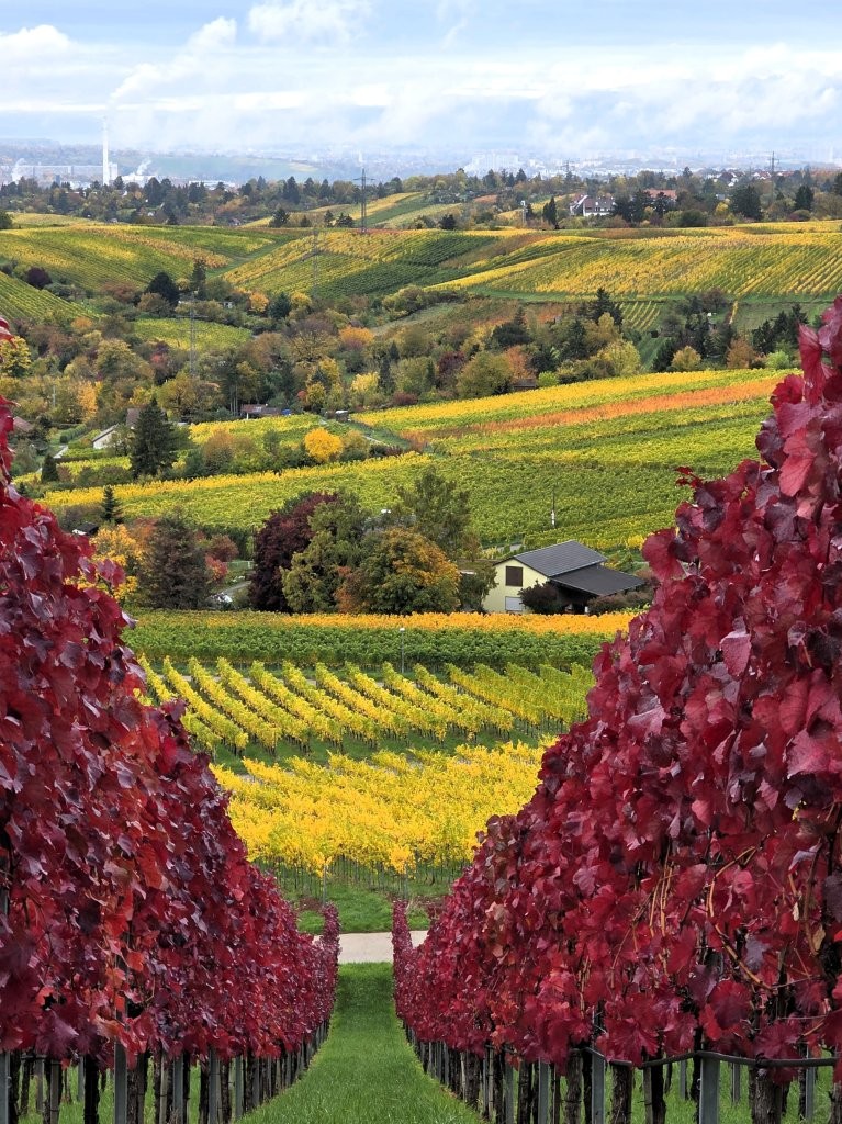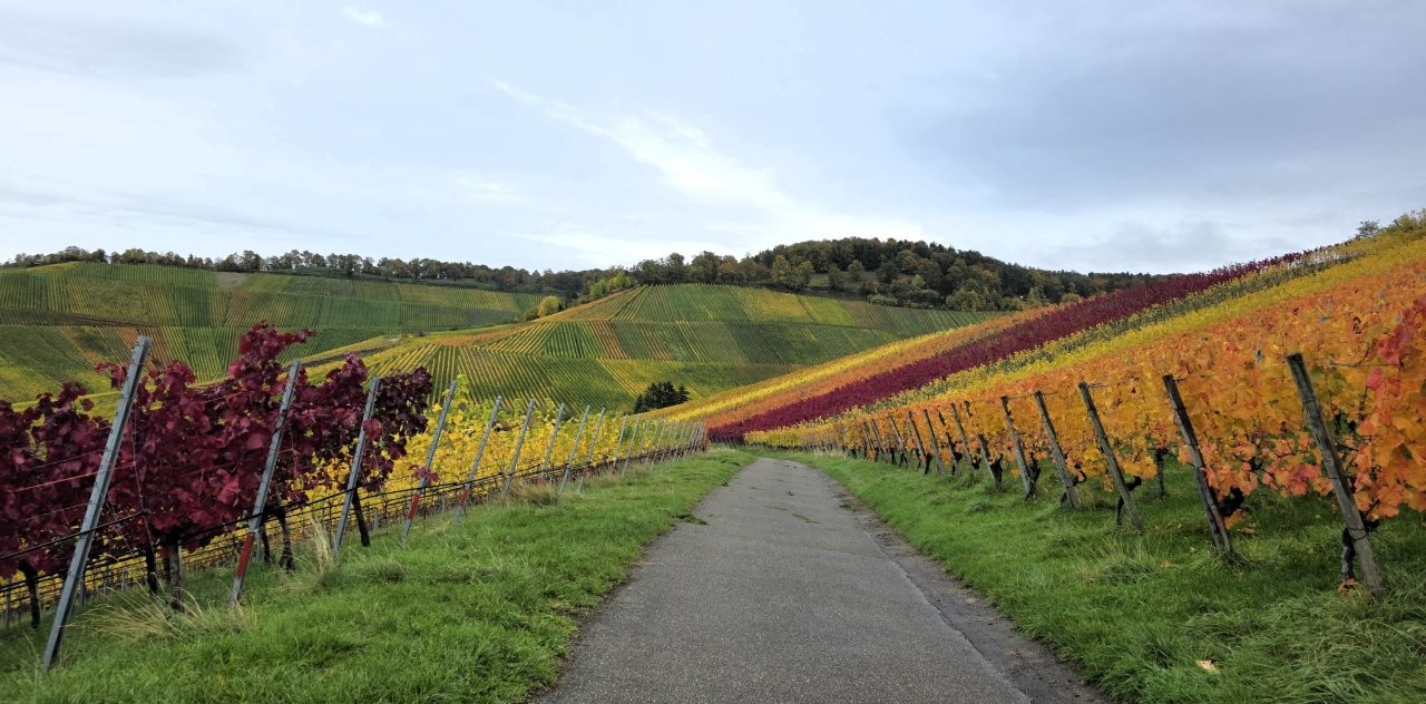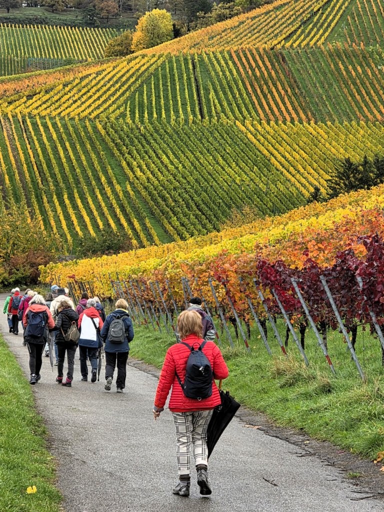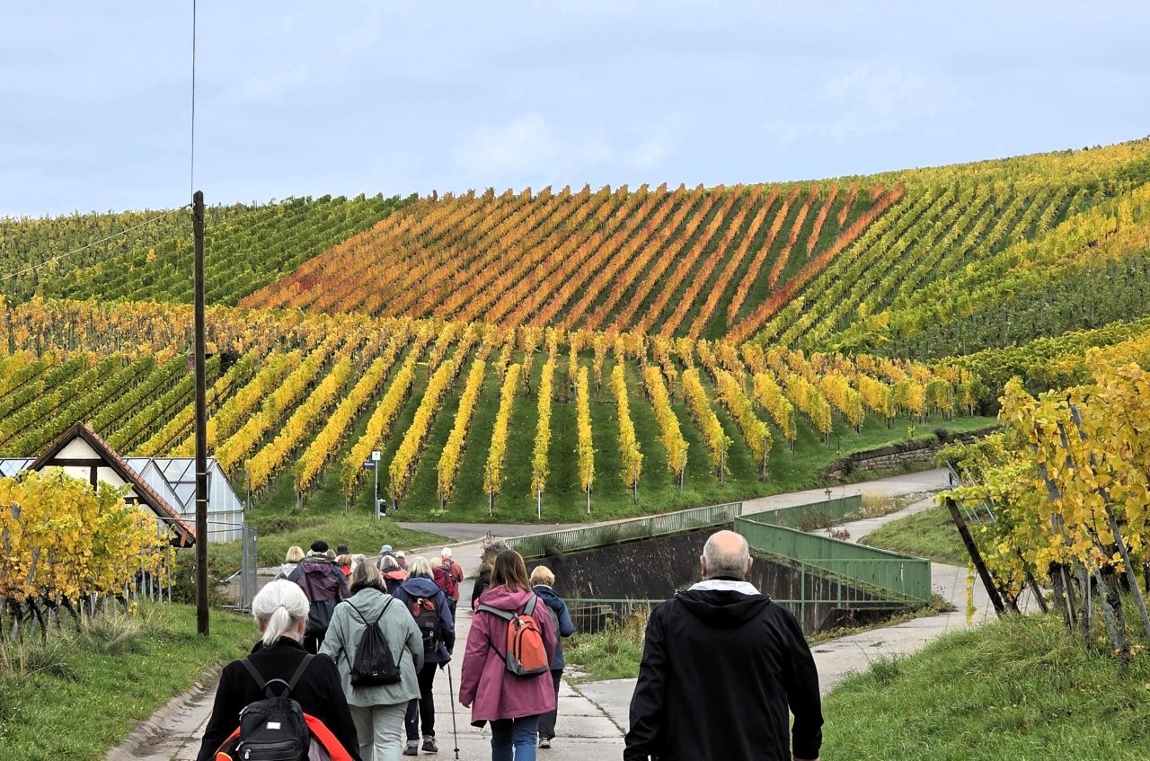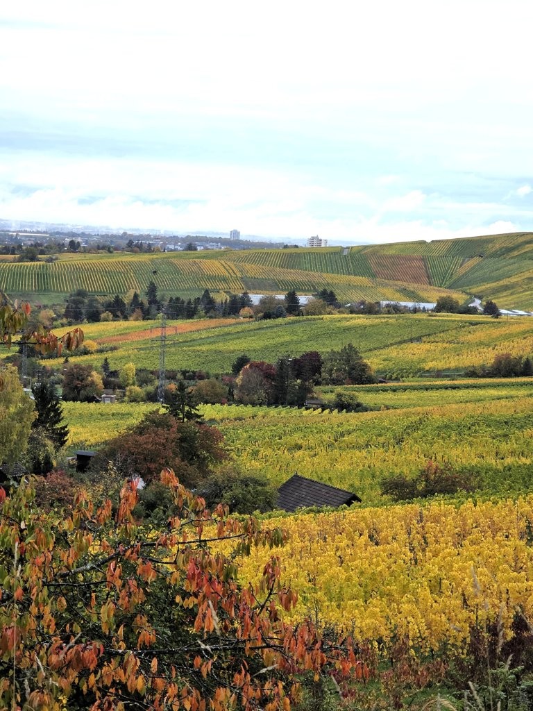 Wanderweg: Vom Rotenberg -> auf Halbhöhenlage durch Weinberge -> schöne Gärten, herrliche Blicke und schön gefärbtes Weinlaub.