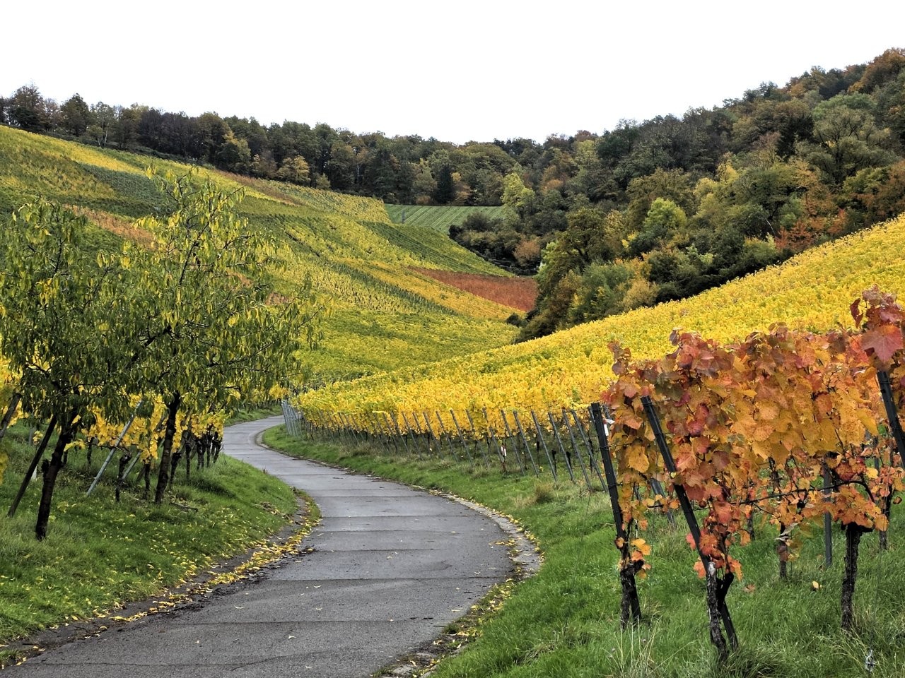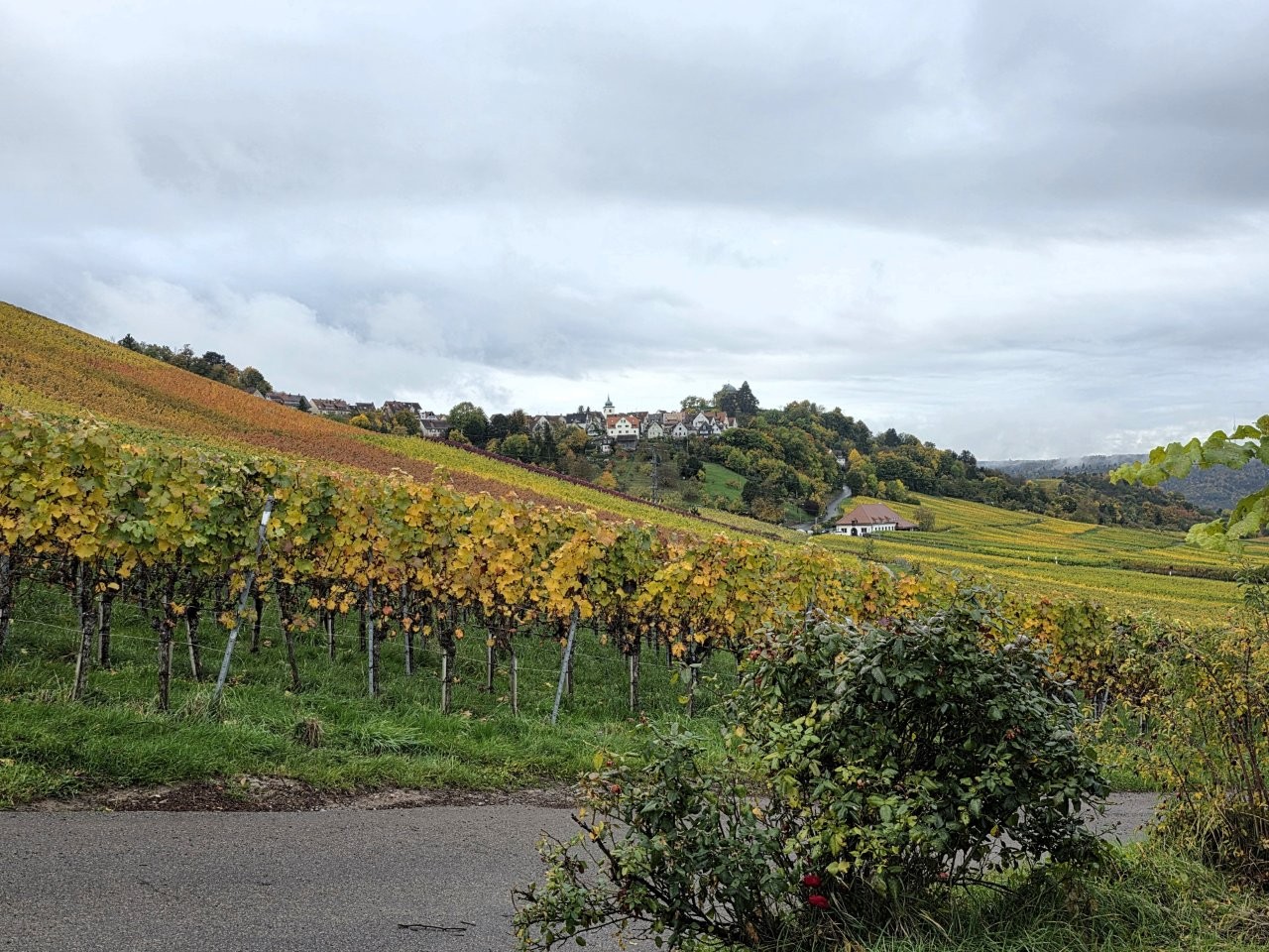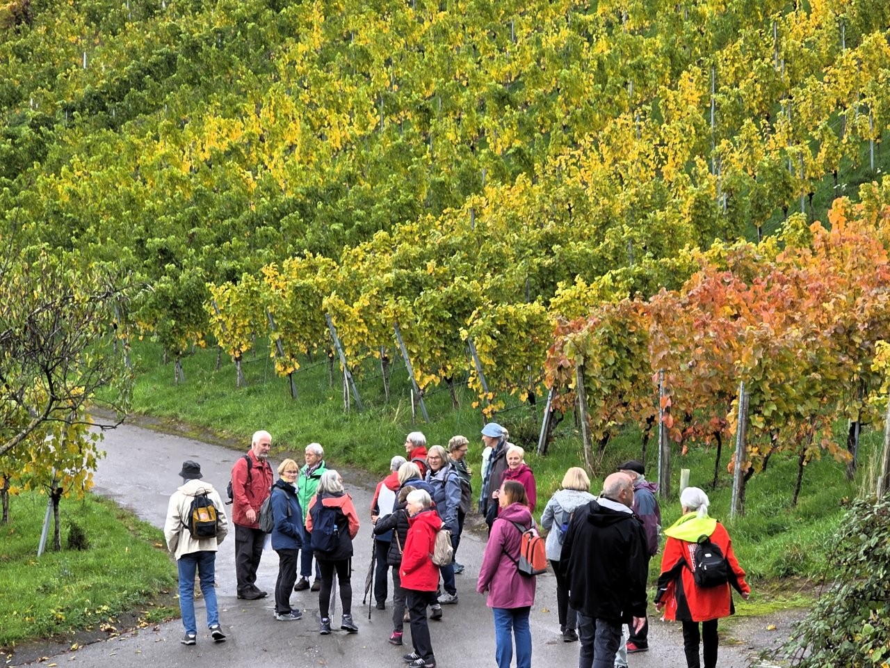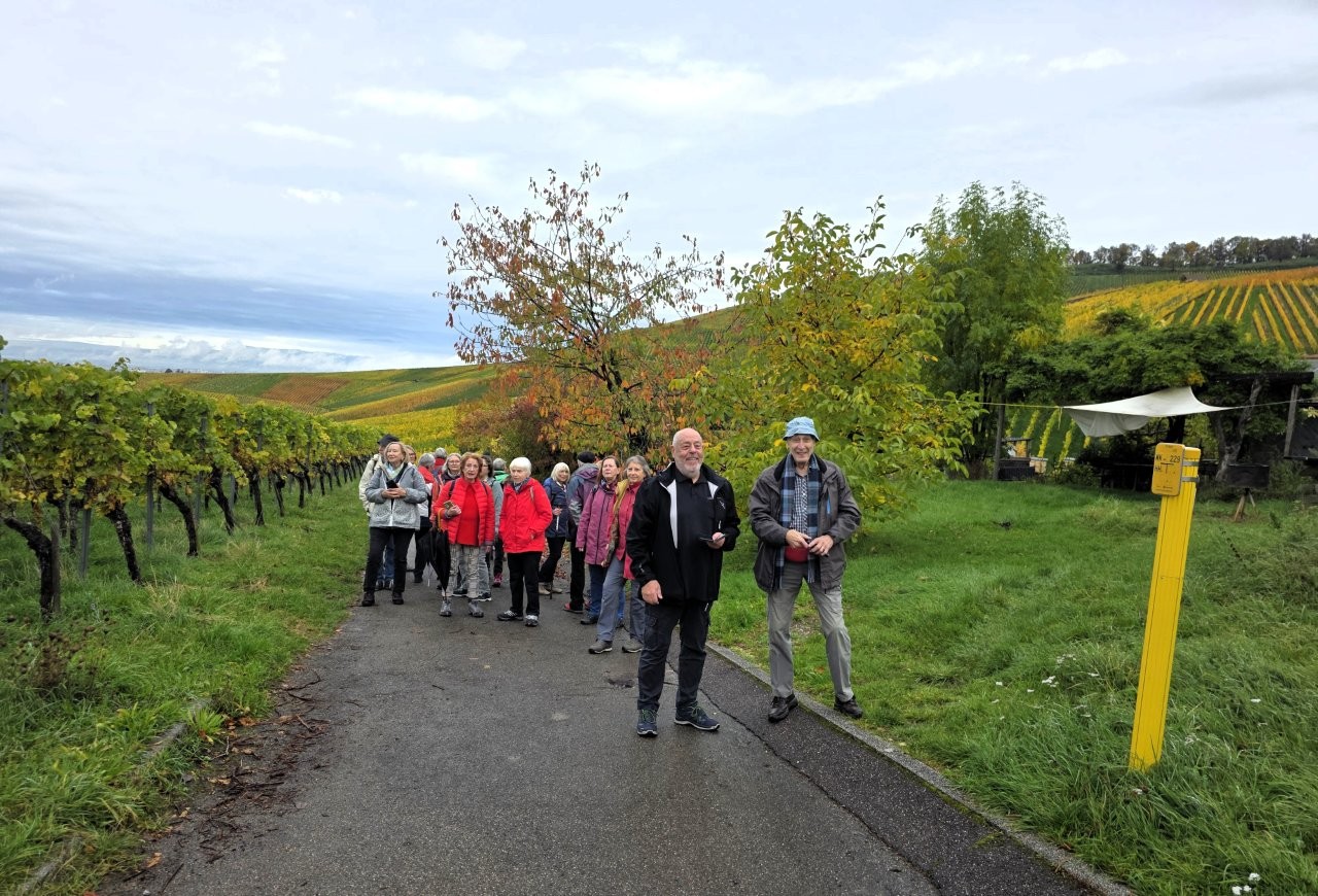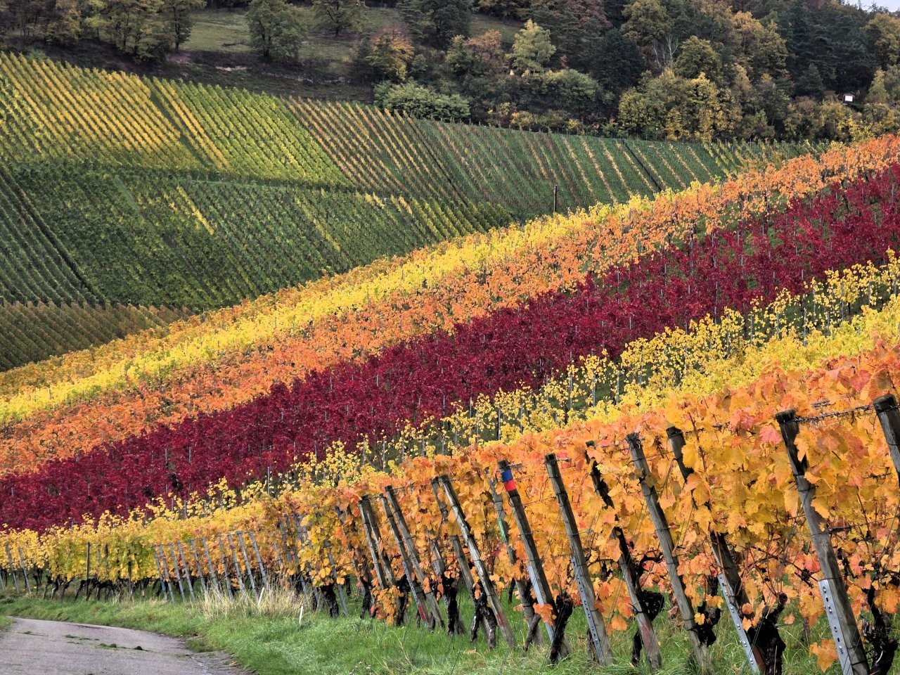 Wanderweg: Vom Rotenberg -> auf Halbhöhenlage durch Weinberge -> schöne Gärten, herrliche Blicke und schön gefärbtes Weinlaub.